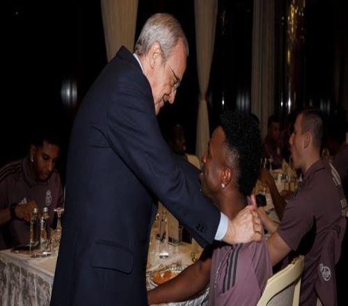 赛前打气,弗洛伦蒂诺到皇马下榻酒店与球员、教练组打招呼