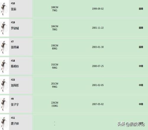 前锋:杨舒予,孙宇,李星诺,张茹,罗欣棫,张梓涵,唐子婷