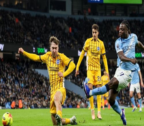 3连平!曼城11布莱顿先赛距榜首5分哈兰德点射+失良机多库造点 -